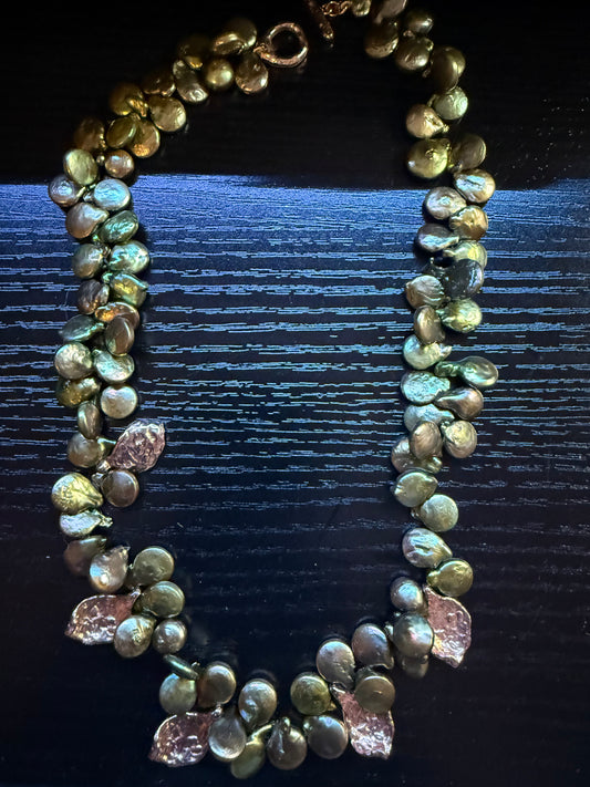 Baroque Green Pearls and Copper Accent Necklace
