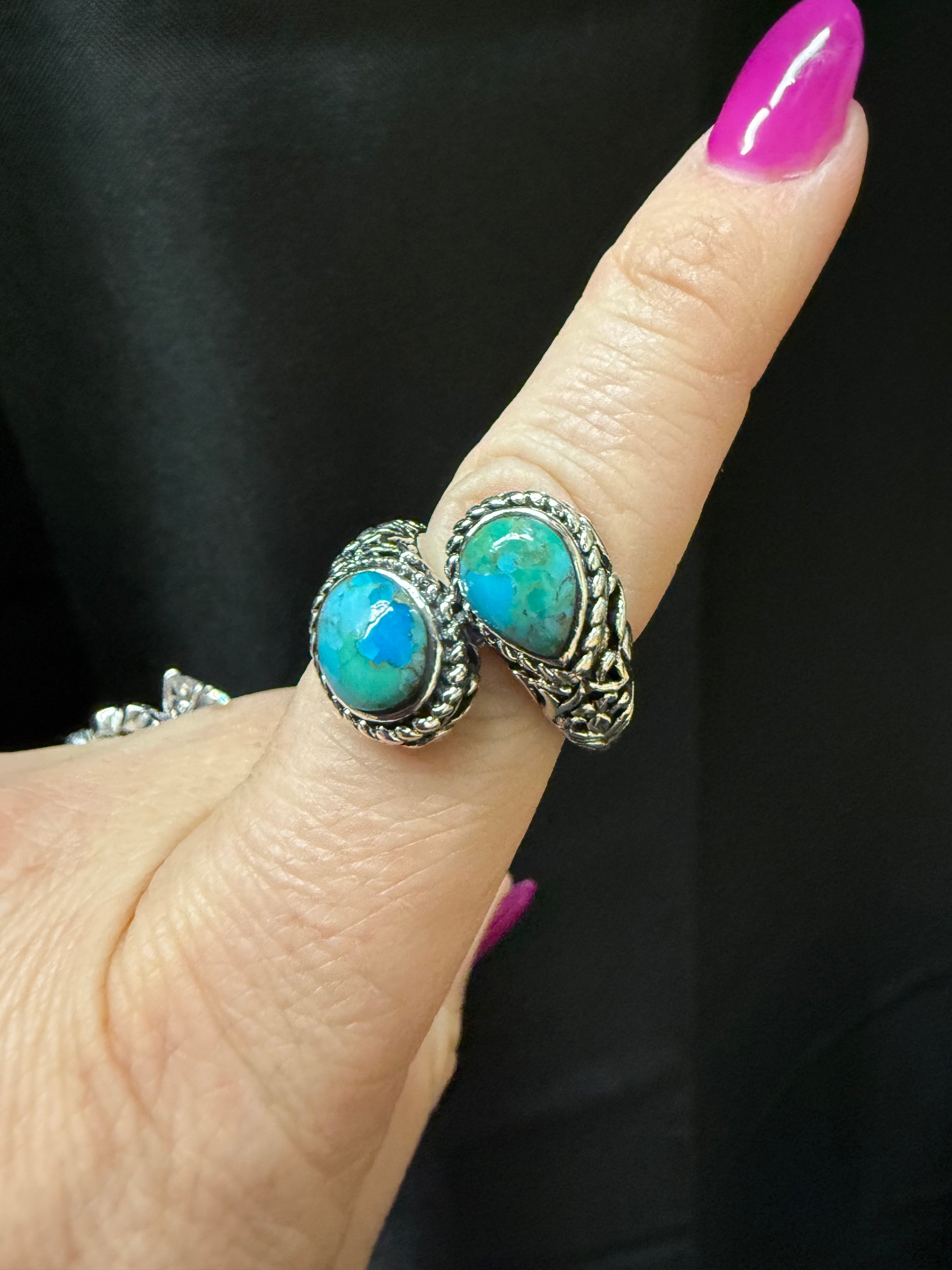 2 Stone Turquoise Boho Adjustable Wrap Ring