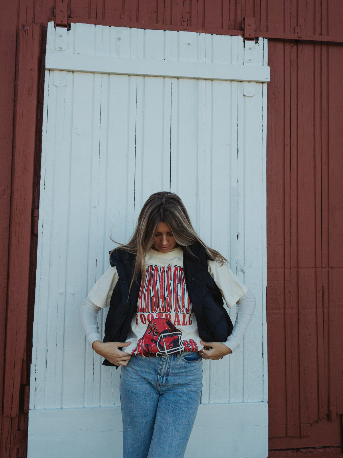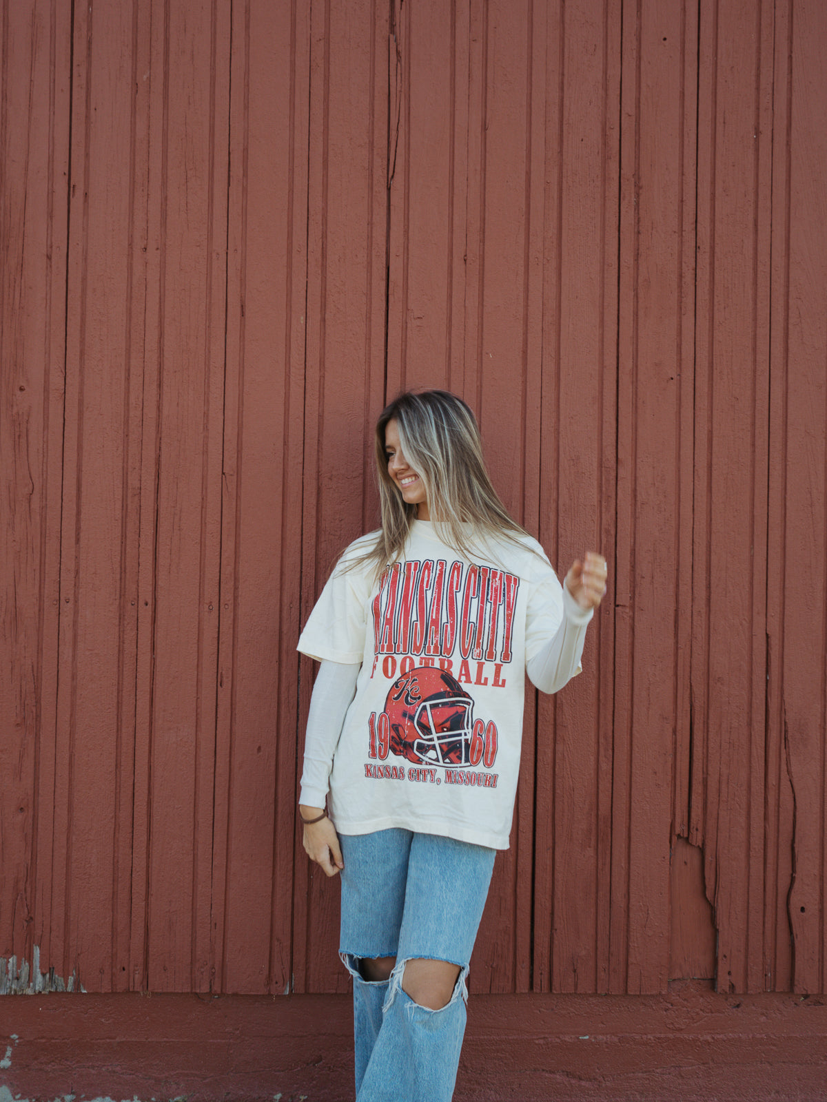 Meet Kansas City Football Vintage Tee – Retro Graphic Team Spirit Shirt | QB Customs from Queen Bee Boutique — designed with boutique quality and everyday style in mind.