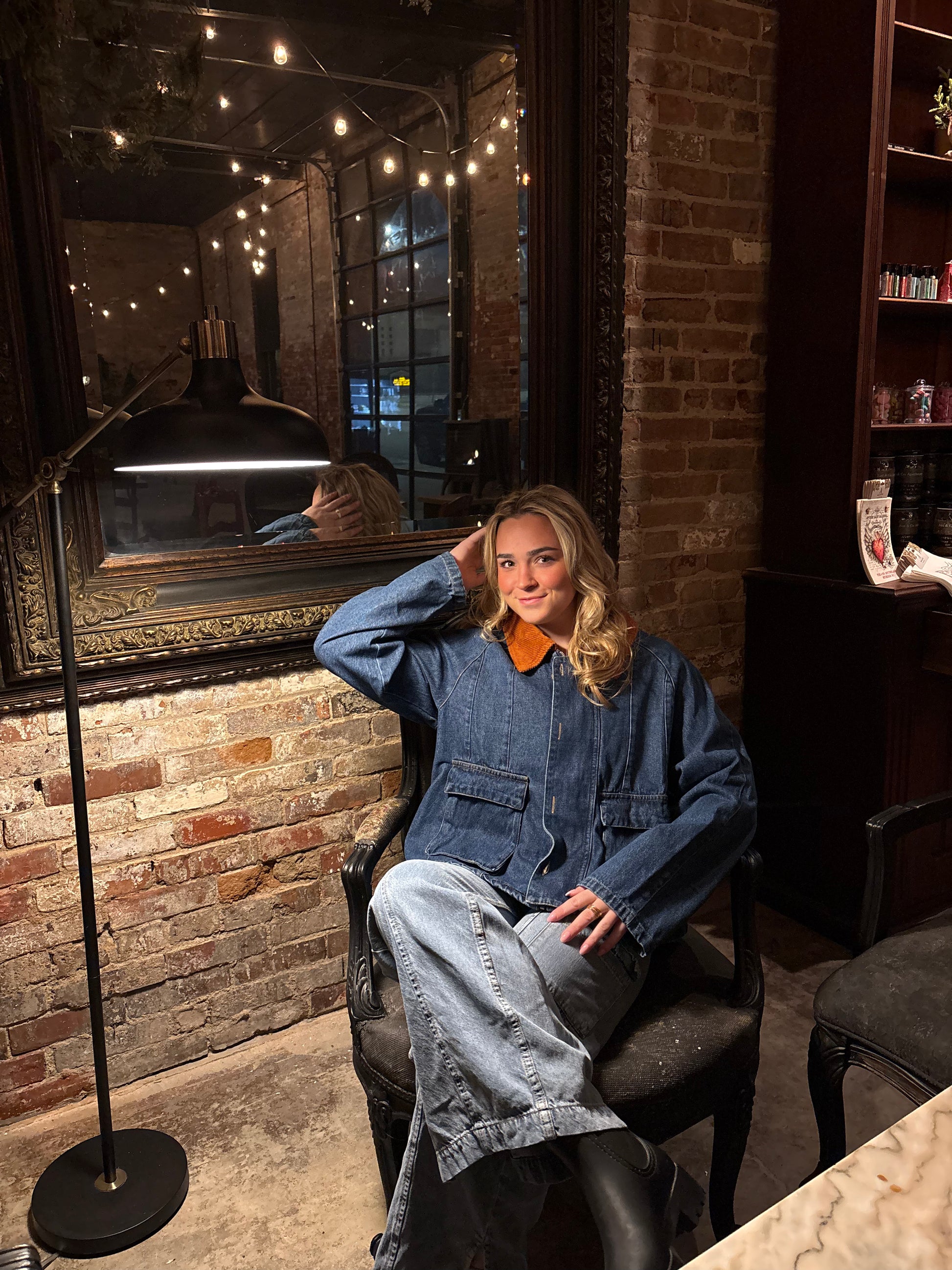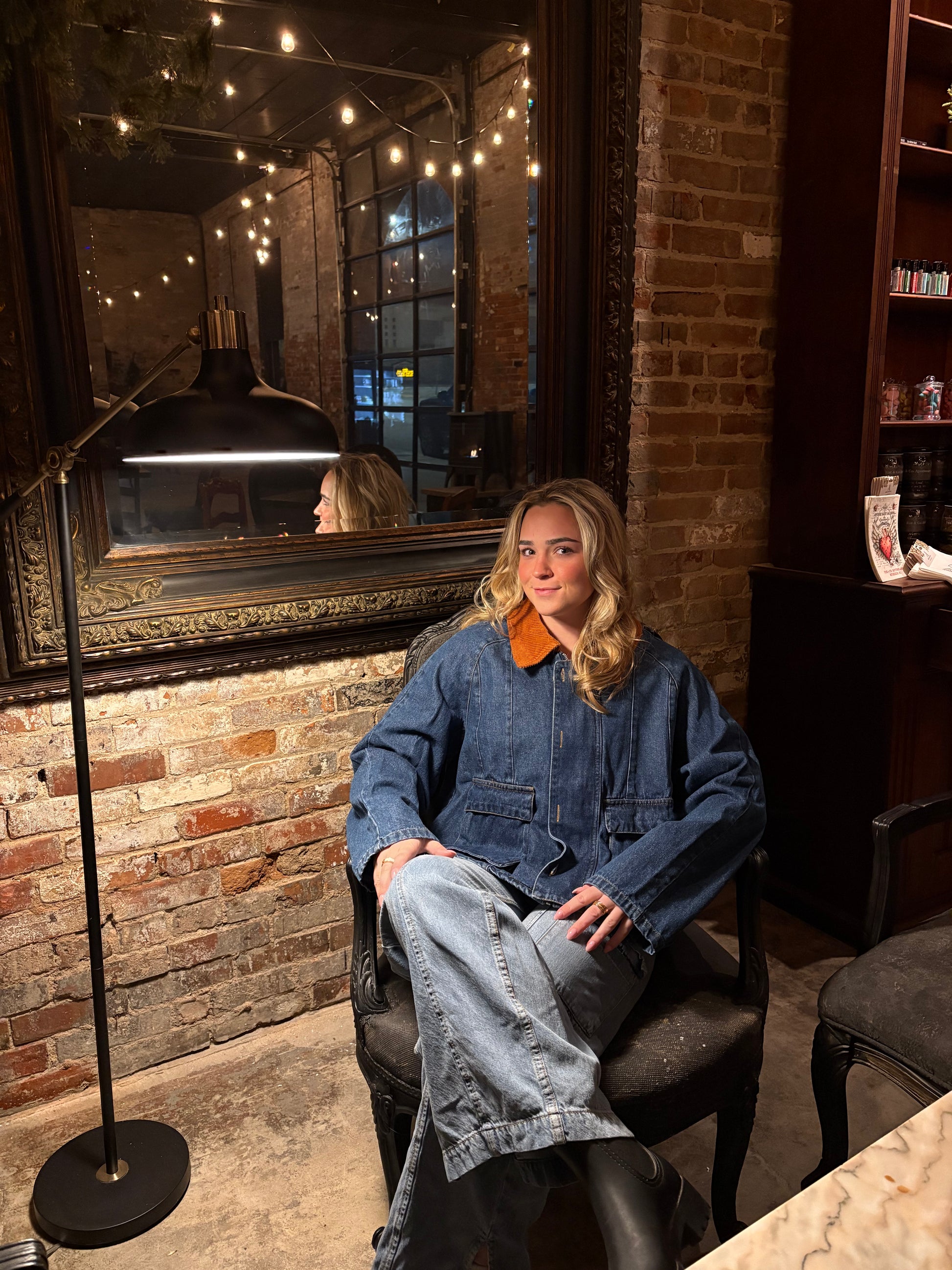 Cute medium dark wash denim coat