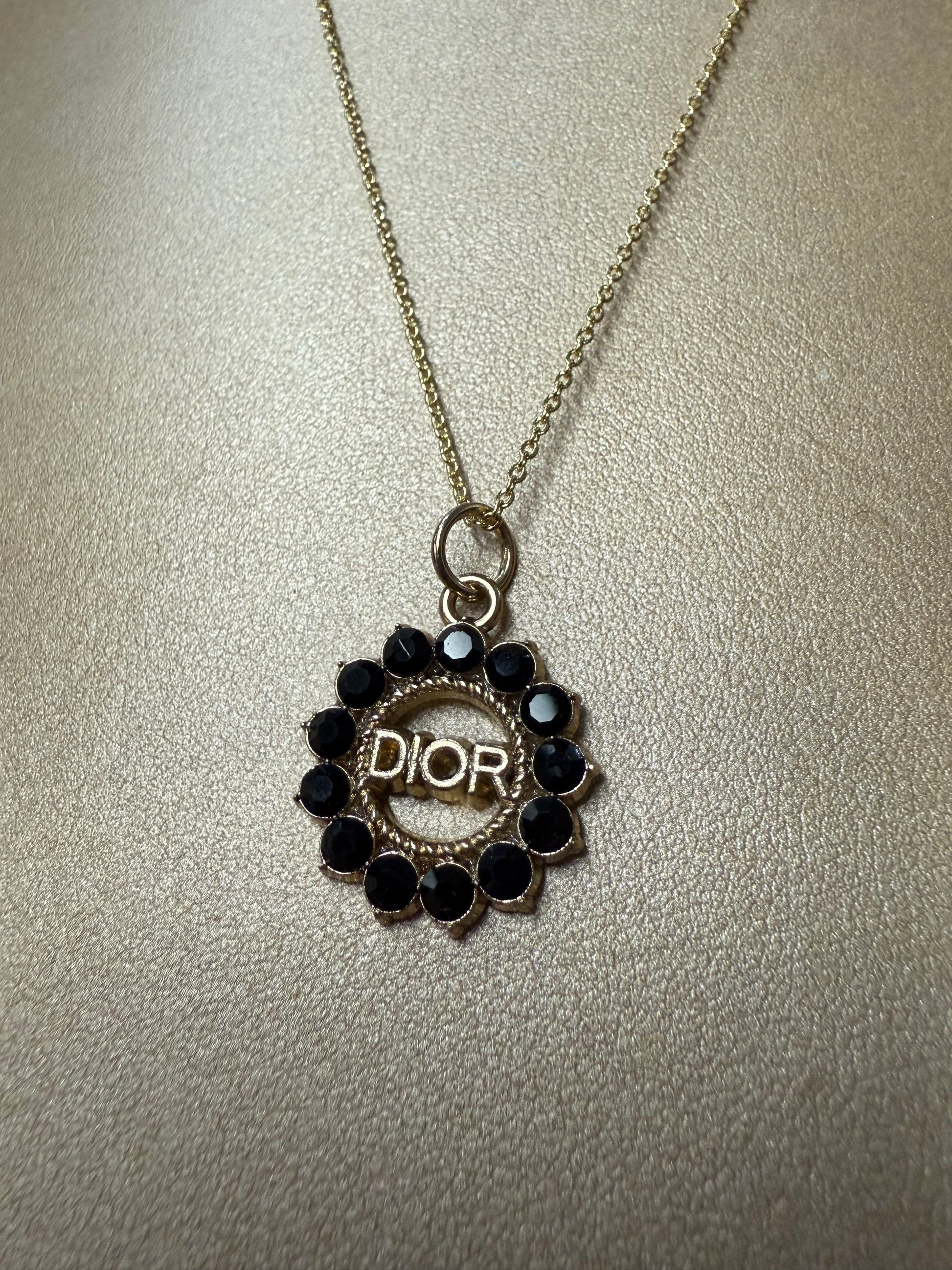 This gold tone necklace features a striking circle pendant accented with faceted black gemstones, creating a bold yet elegant look. The versatile design makes it perfect for elevating your everyday outfits or adding a touch of glamour to special occasions.