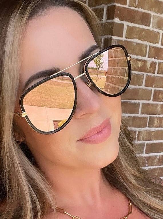 * Cove in Rose Pink - Black & gold frames with rose pink mirror lens