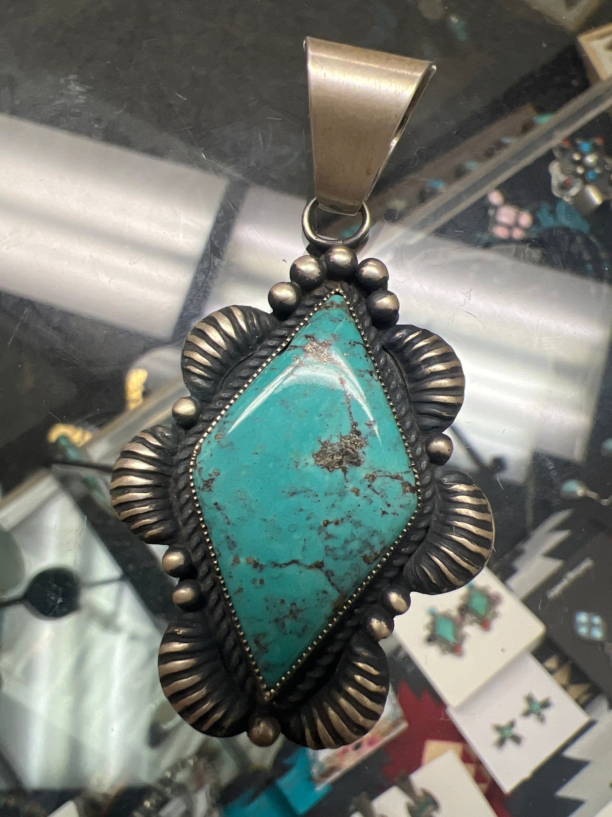 Handmade Unique Diamond Shape Natural Turquoise Sterling Pendant