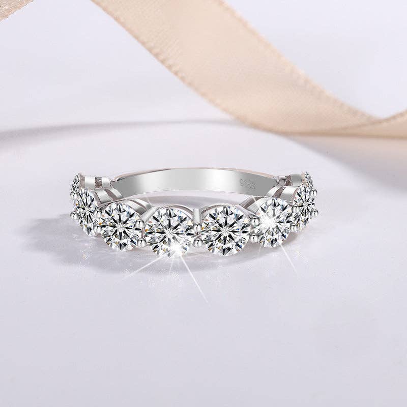 Eight Moissanite Band Stacker Ring in 925 Sterling Silver