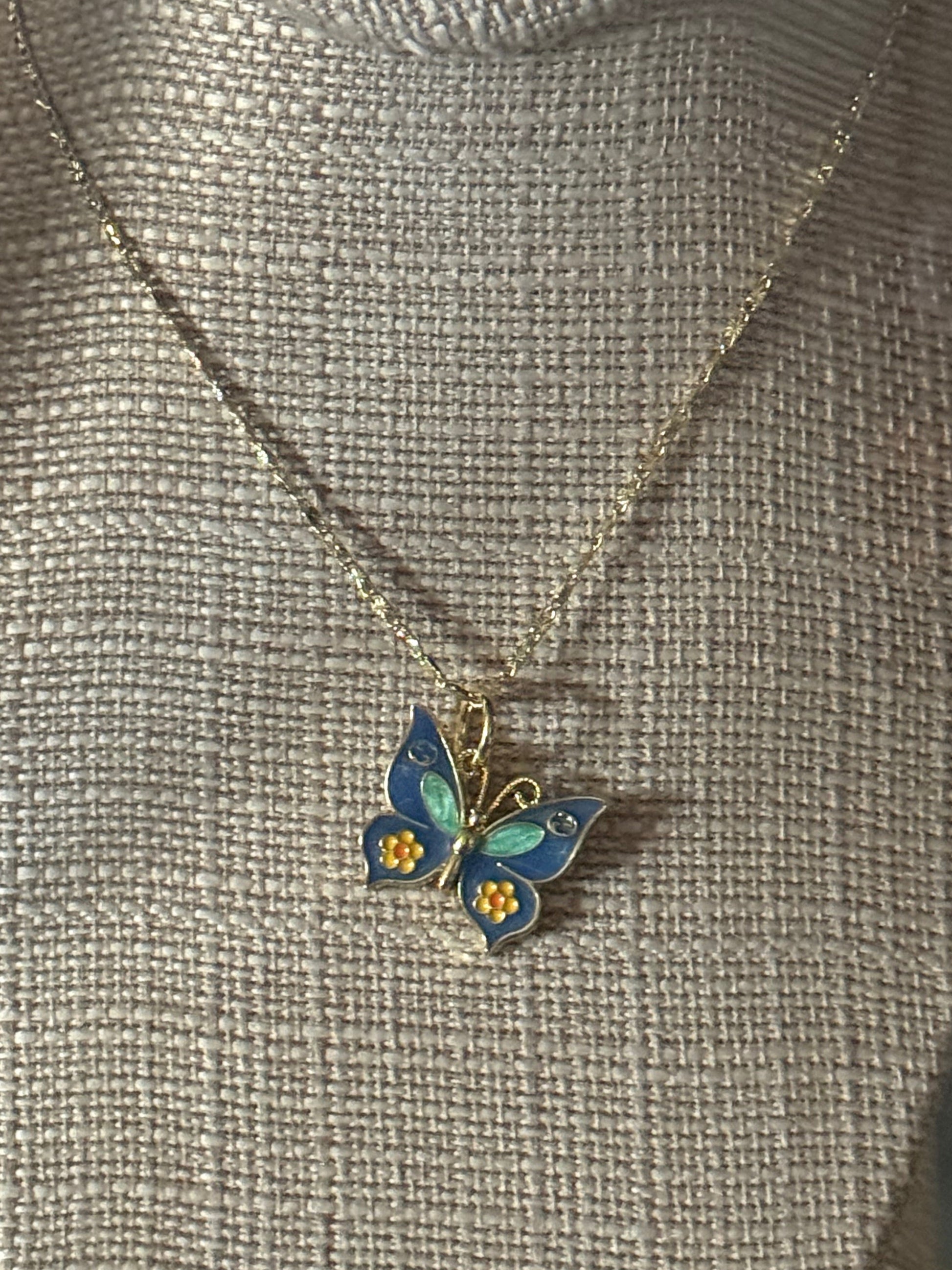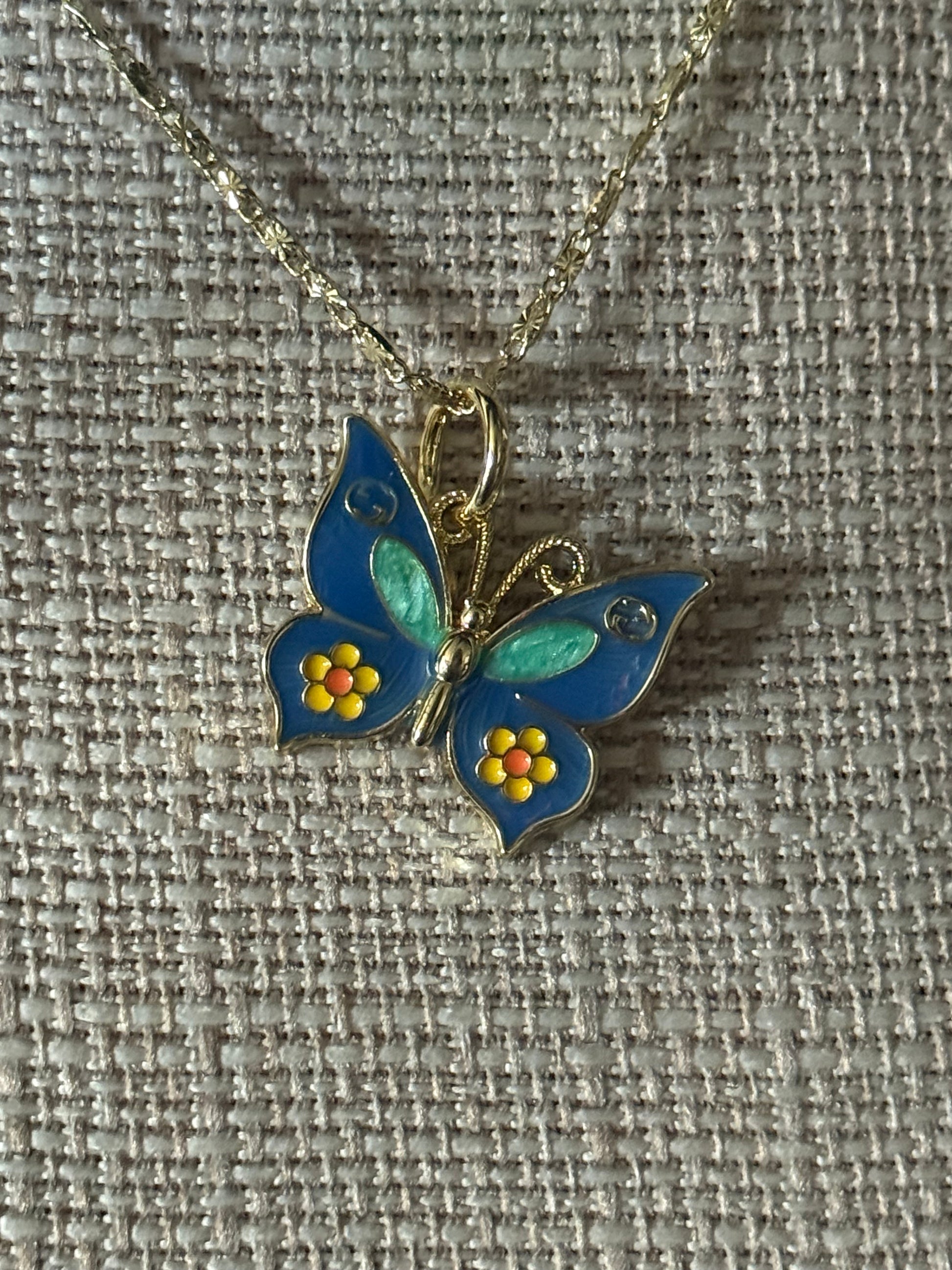 Blue Enamel Butterfly Pendant Necklace β Gold Tone Chain