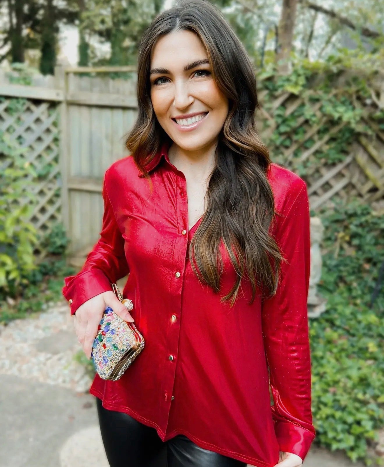 Fire red silk button down blouse