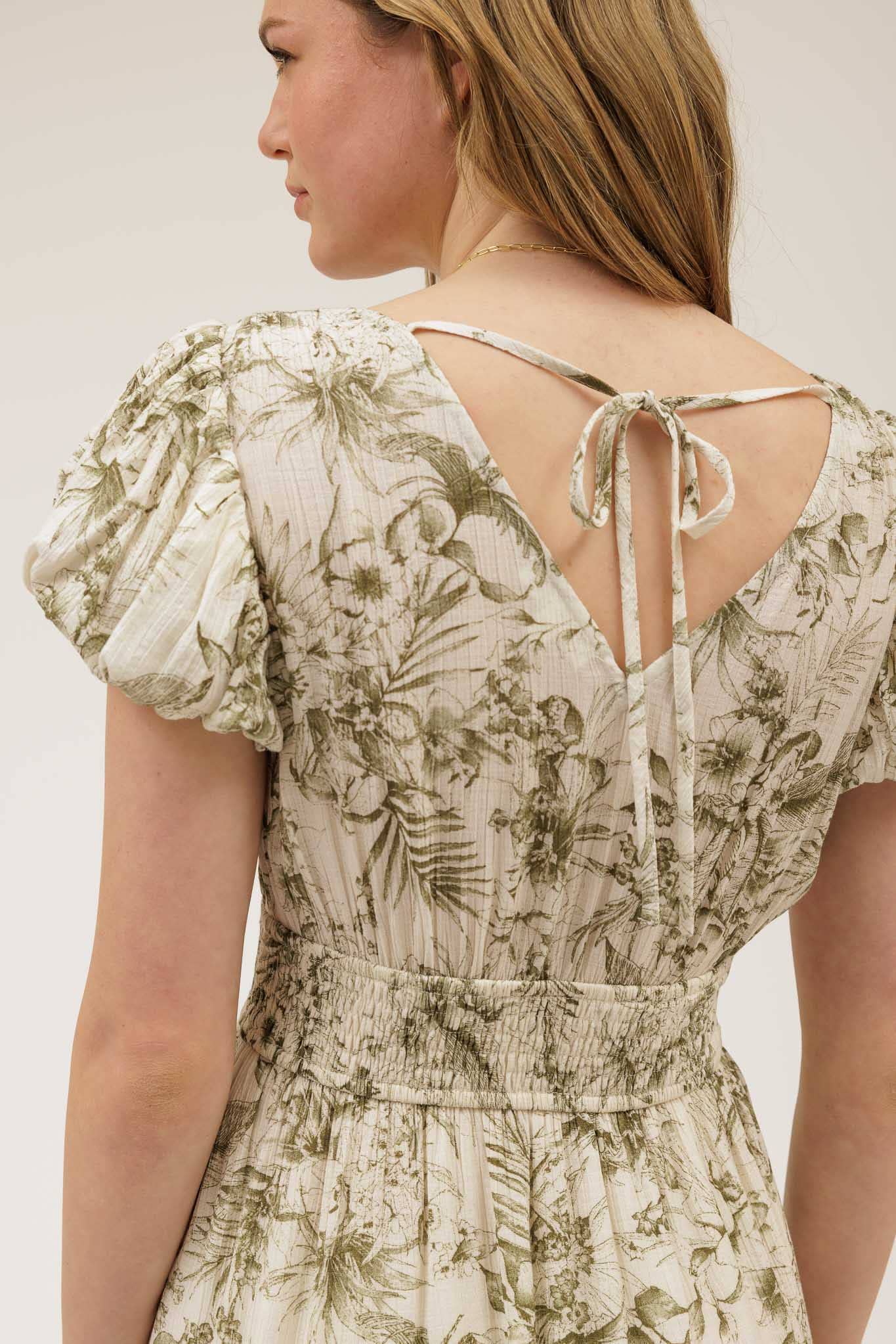 Isabella Floral V-Neck Midi Dress – Front Tie Boho Sun Dress