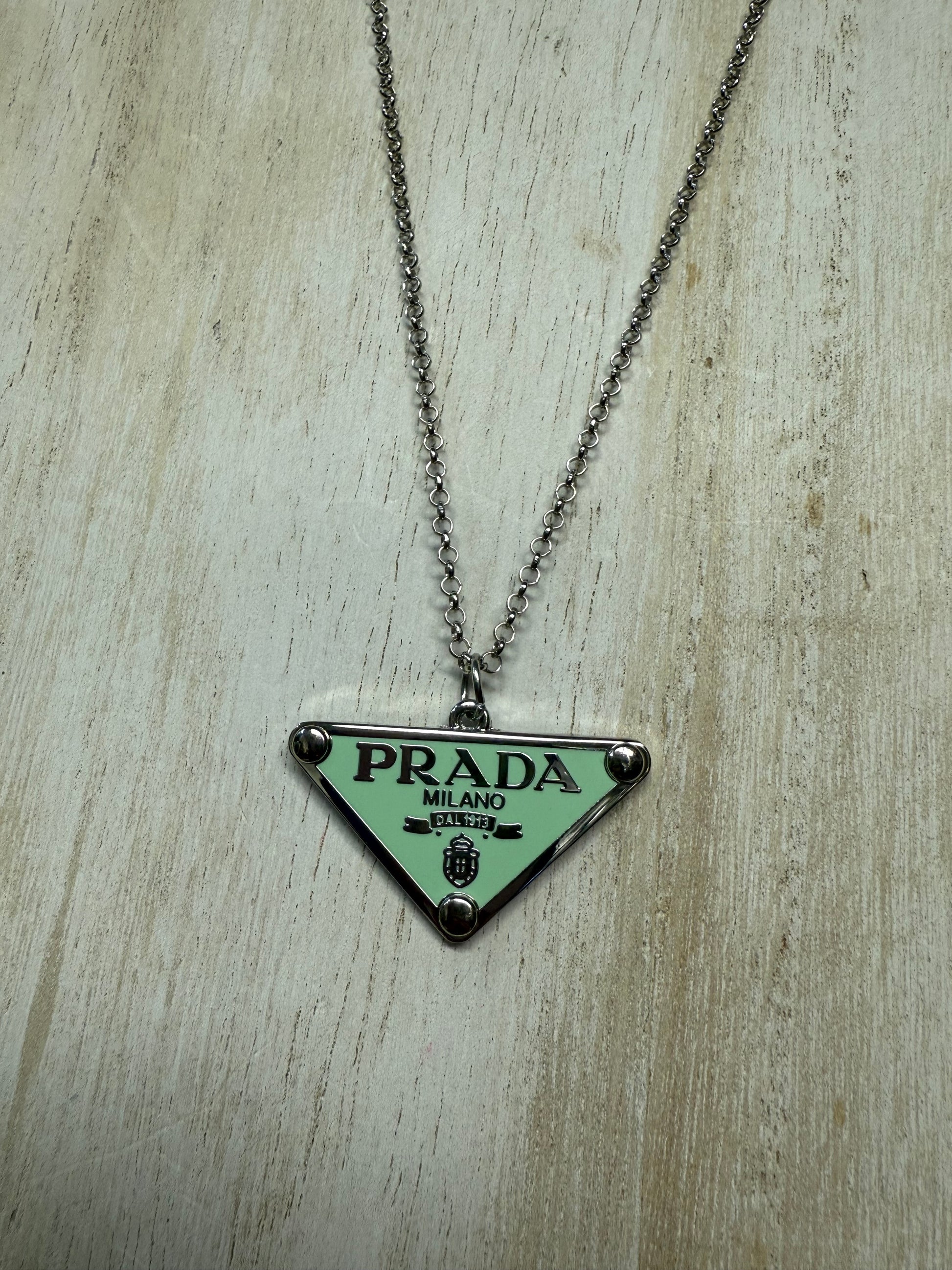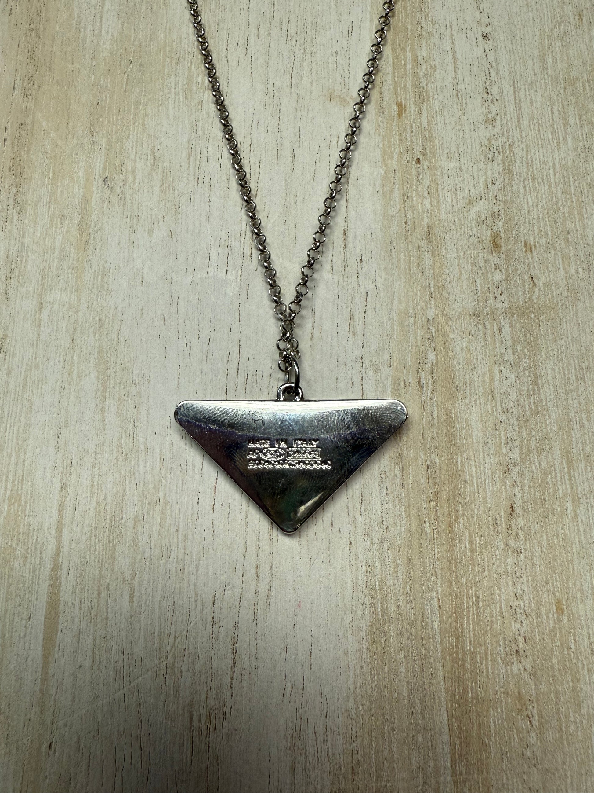 Mint Triangle Pendant Necklace – Silver Tone Chain
