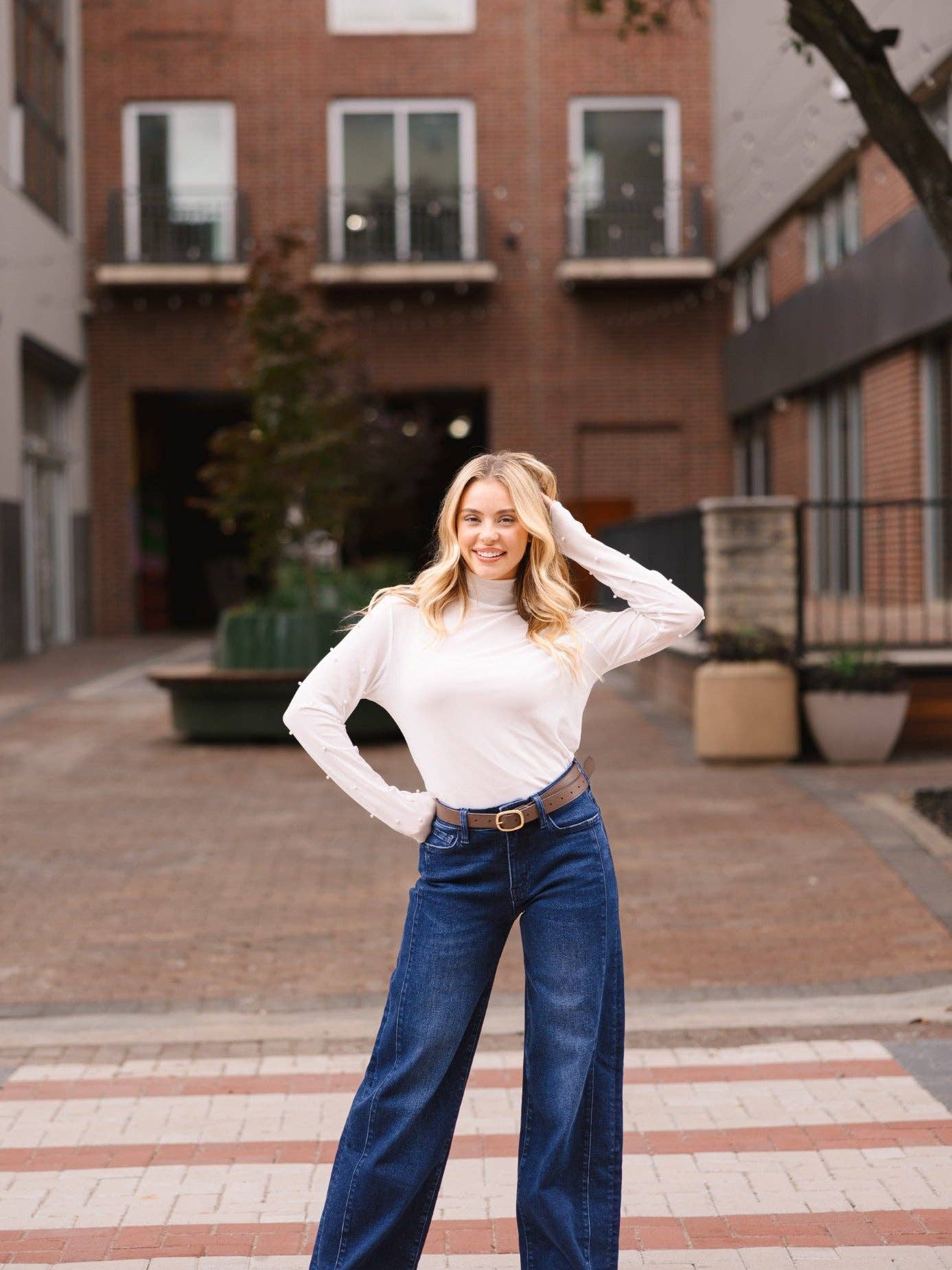 Model & Fit Model: Taylor (5' 7" and Size 8 or M) is wearing a size Small Runs Large Unlined High Stretch Mock Neck Pearl Details on Sleeve Fabric & Care Material: 96% Polyester 4% Spandex Care Instructions: Hand Wash with Cold Water, Do Not Bleach, Hang or Line Dry Manufactured Overseas