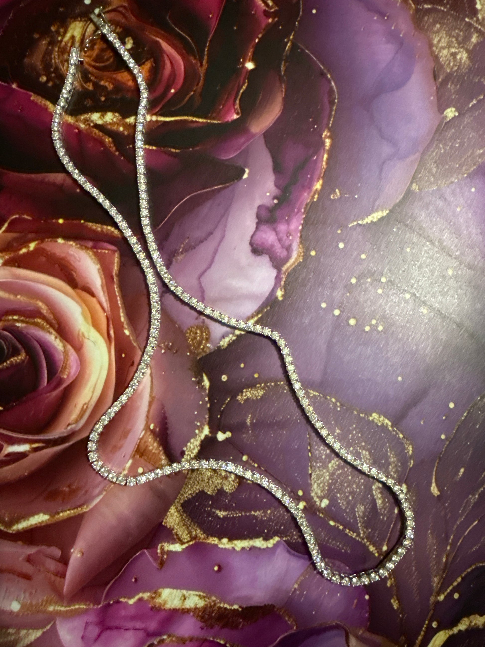 16.6ct authentic moissanite and 22 inches long and 3mm.