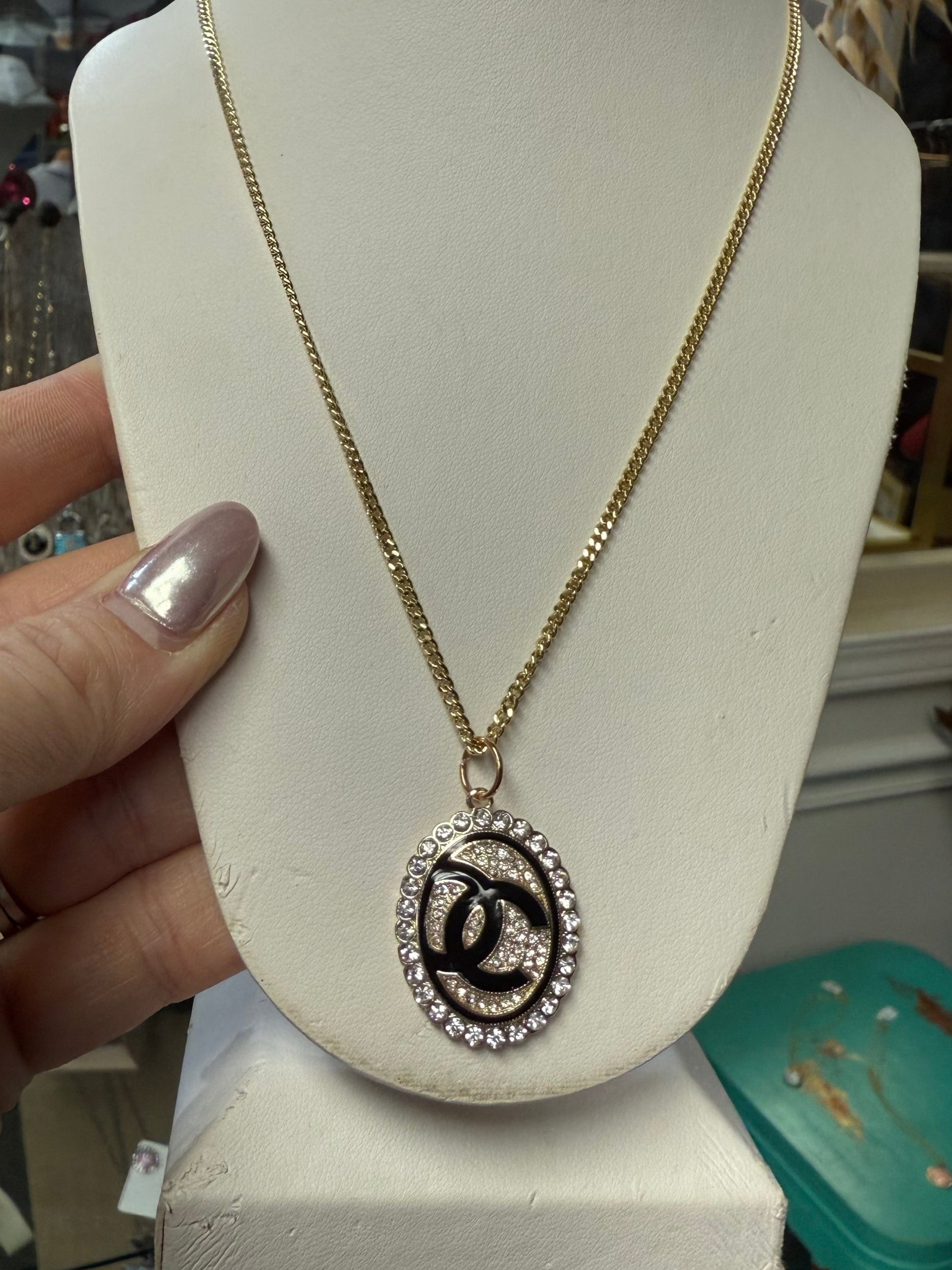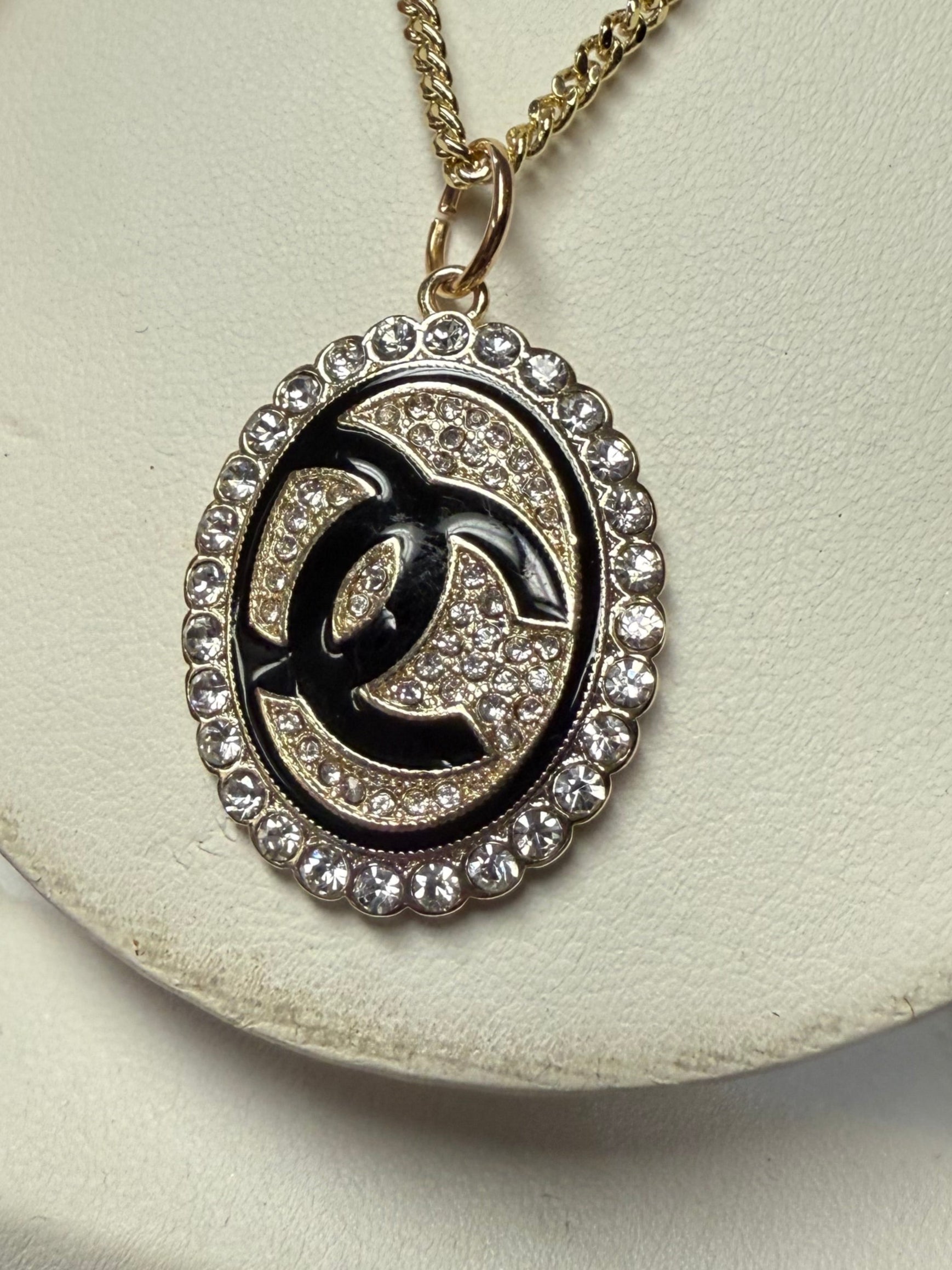 Gold Tone Oval Crystal Pendant Necklace – Statement Jewelry