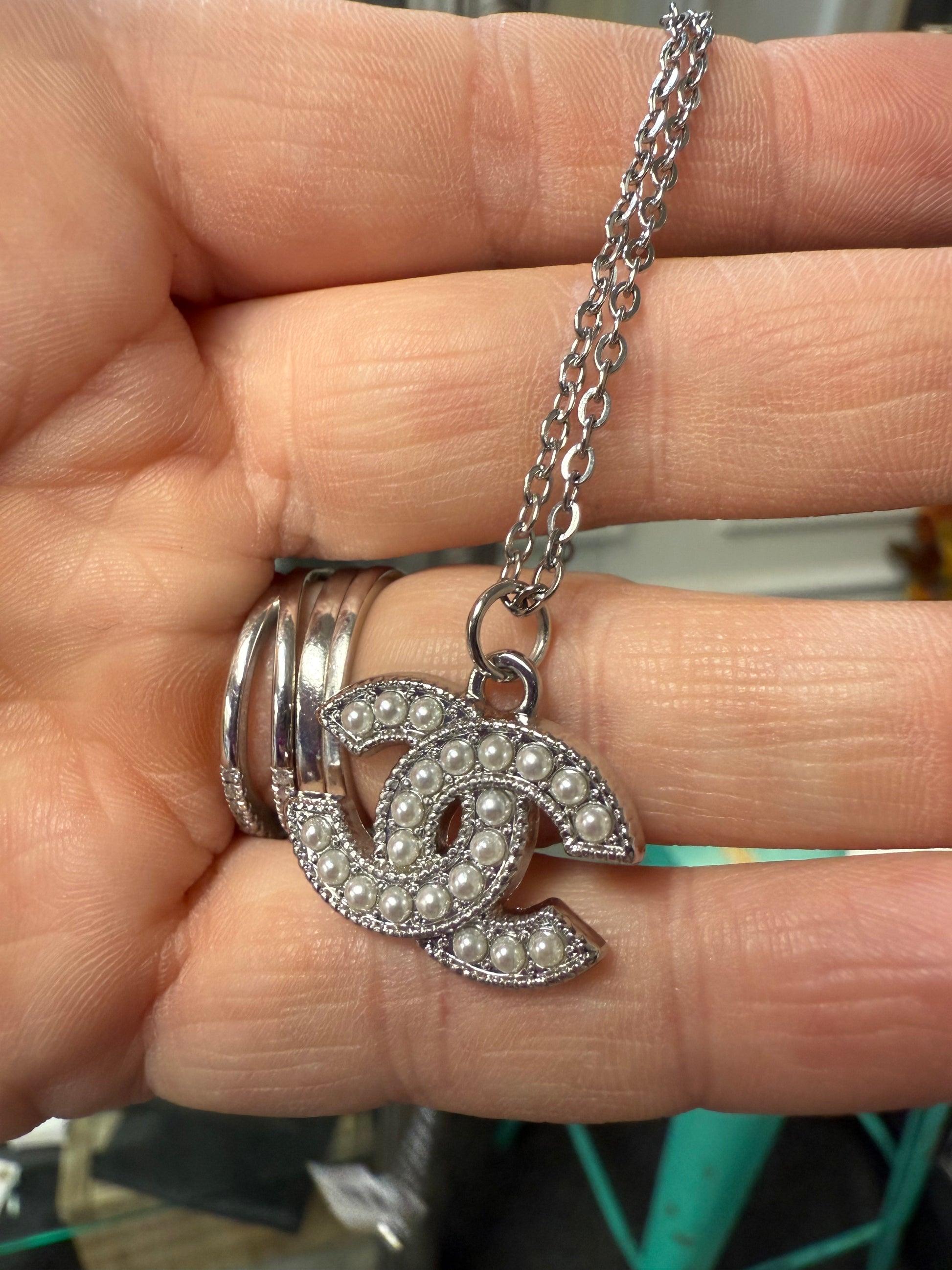 This silver tone necklace features a pendant adorned with delicate pearl accents, creating a timeless and elegant look. Perfect for elevating everyday wear or pairing with formal outfits, this piece brings a touch of sophistication to your jewelry collection.