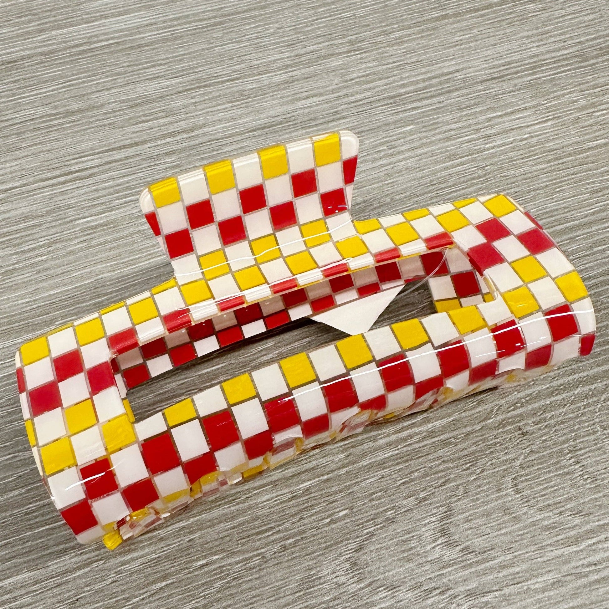 The Red Kingdom Clip is the perfect addition to your hair styling collection. Inspired by the Kansas City Chiefs, this claw clip features a stunning red and gold design that is sure to turn heads.
