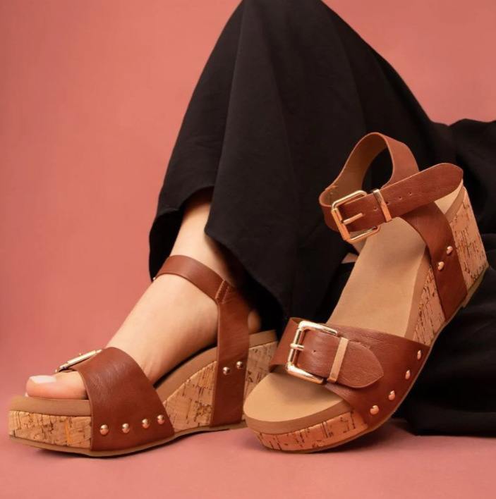 Feet rest comfortably in the wedge thanks to our exclusive ultra-comfortable footbed, and the open but closed toe strap offers coverage and support while showing off your pedicure. It combines very well with both dresses and wide pants.