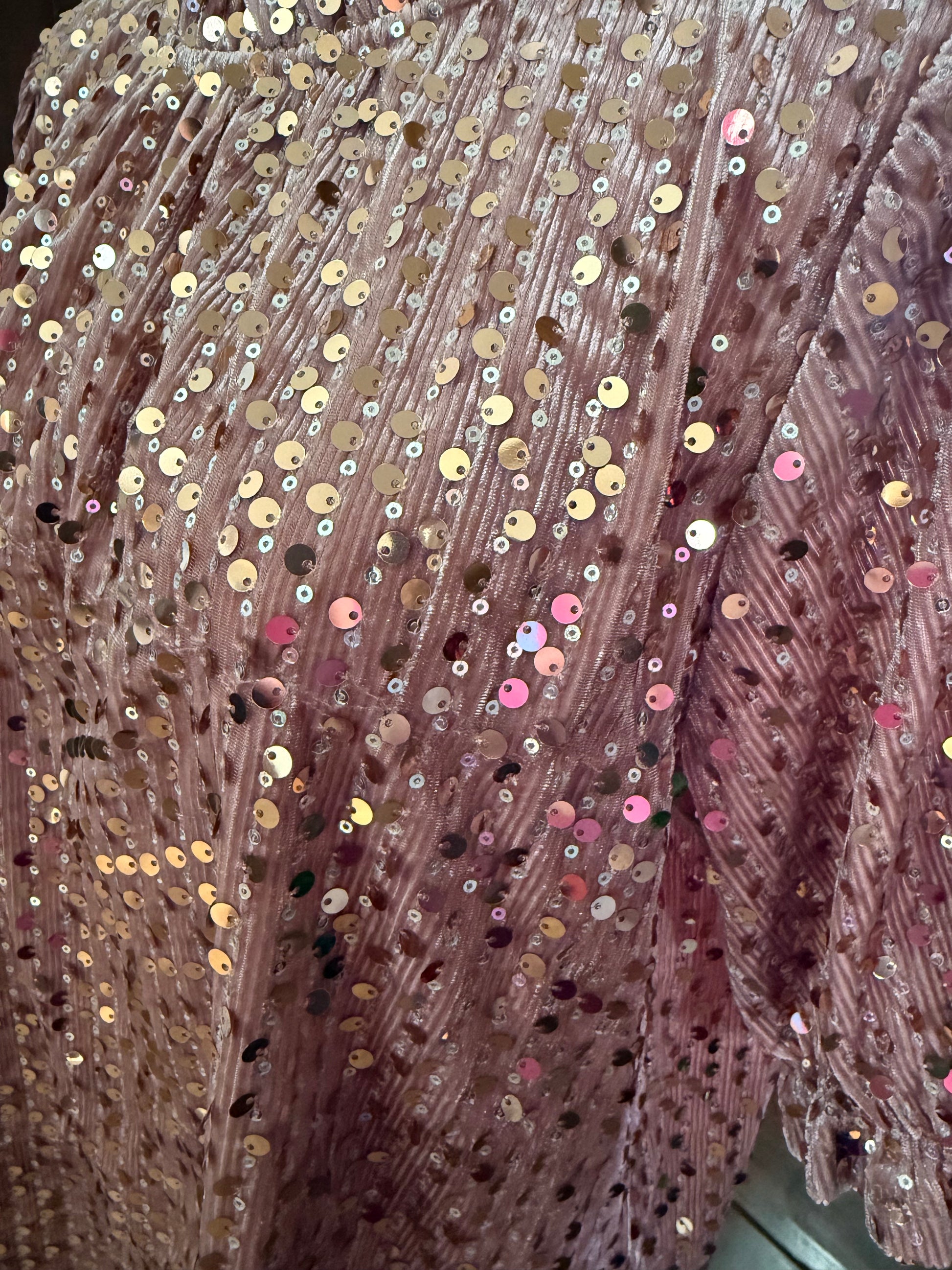Party Like its 1999! Let's go girls! This top is everything! Spaced sequin rows alternating from rose to silver.