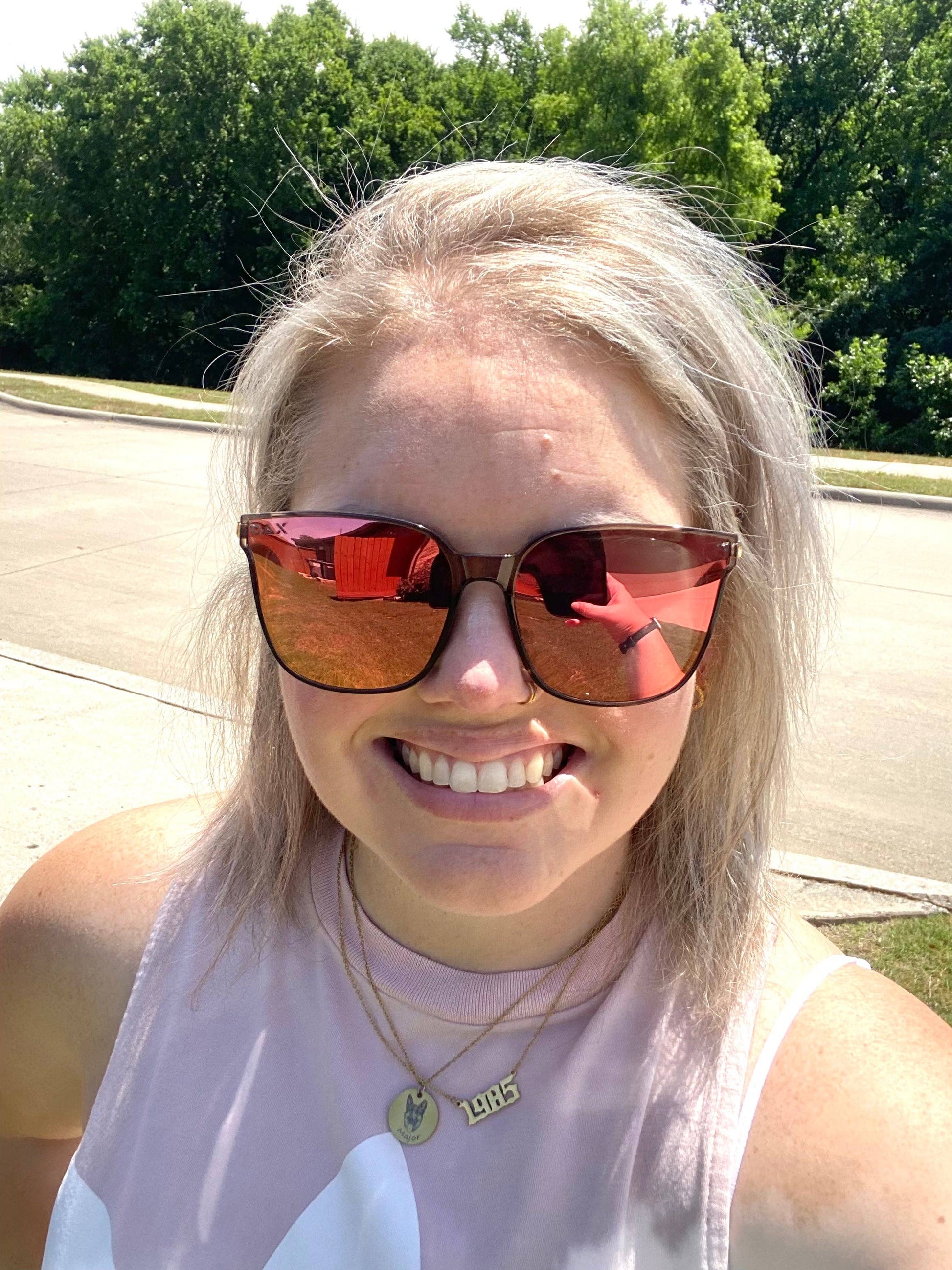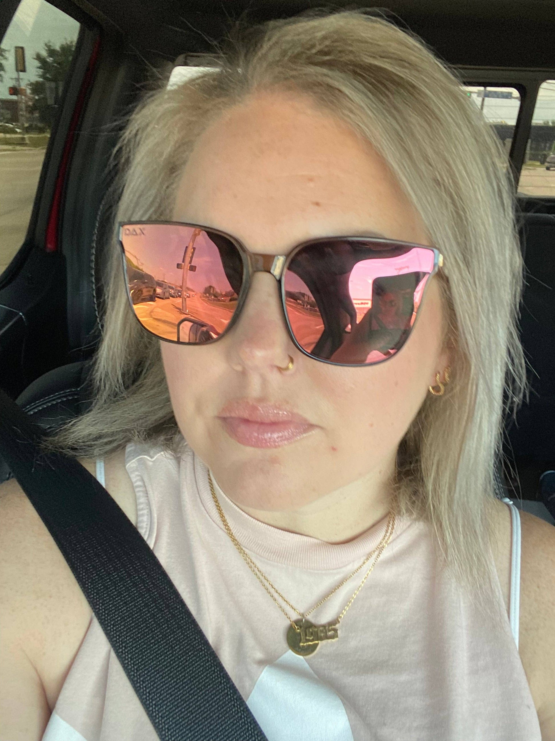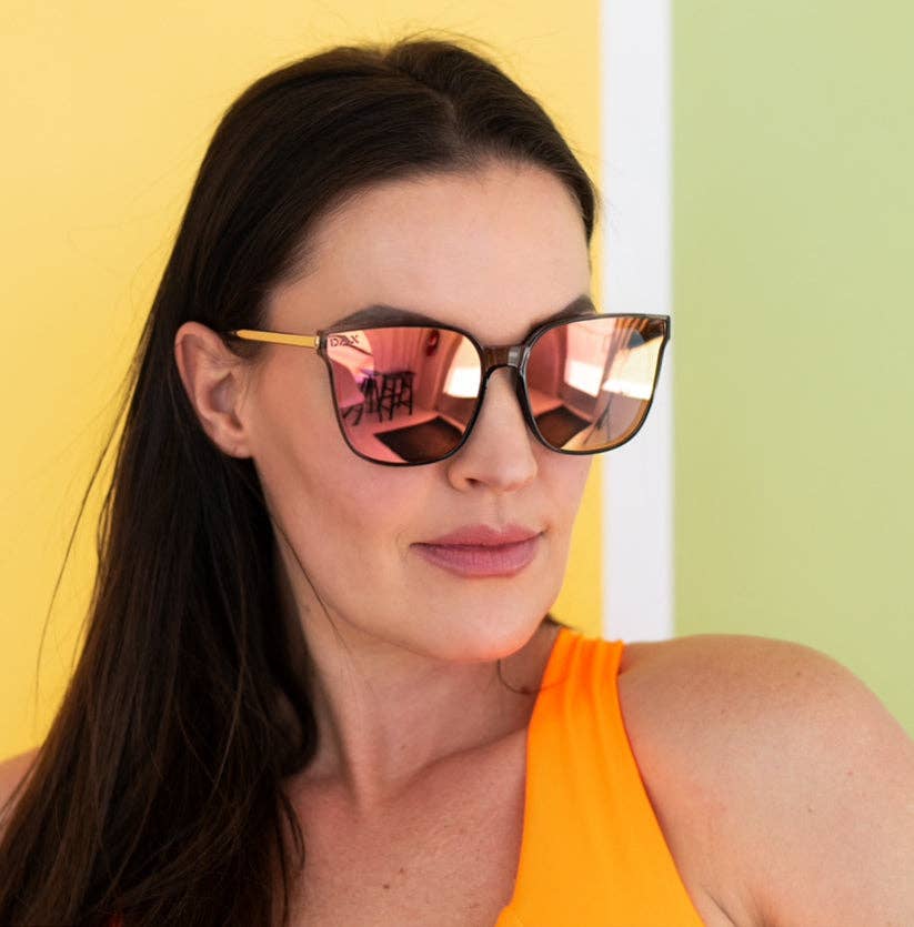 * Roxy in Black - Black front Frame with Gold arm accents with rose gold mirror lens