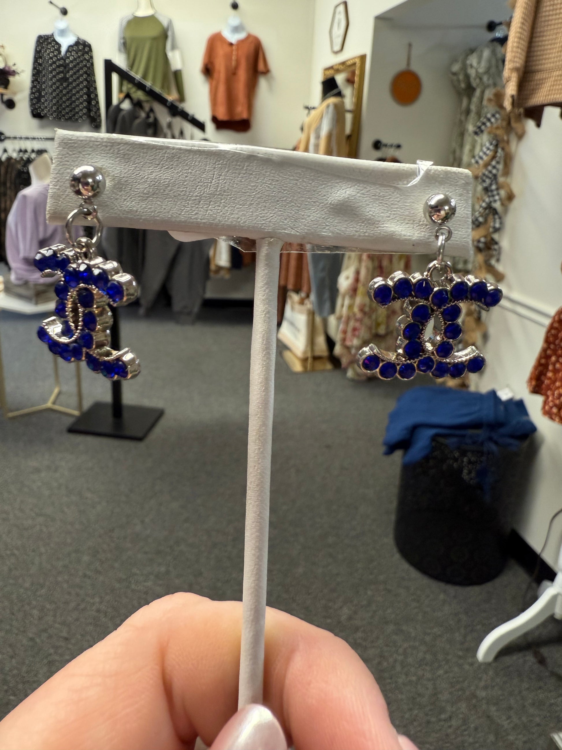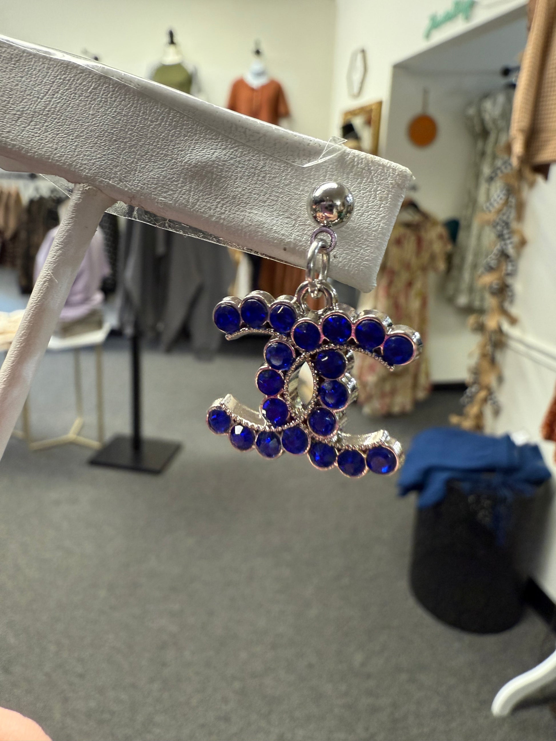 Add a pop of color and sparkle to your outfit with these silver tone drop earrings featuring bold blue gem accents. Their playful yet elegant design makes them versatile for casual outings, parties, or dressing up your everyday wardrobe.