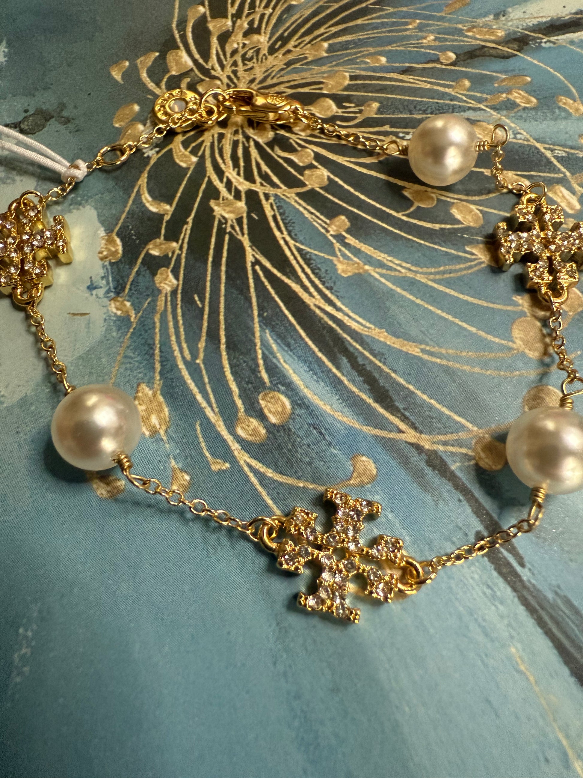 Discover TB Pearl Crystal Chain Bracelet from Queen Bee Boutique — crafted with boutique quality and timeless style.