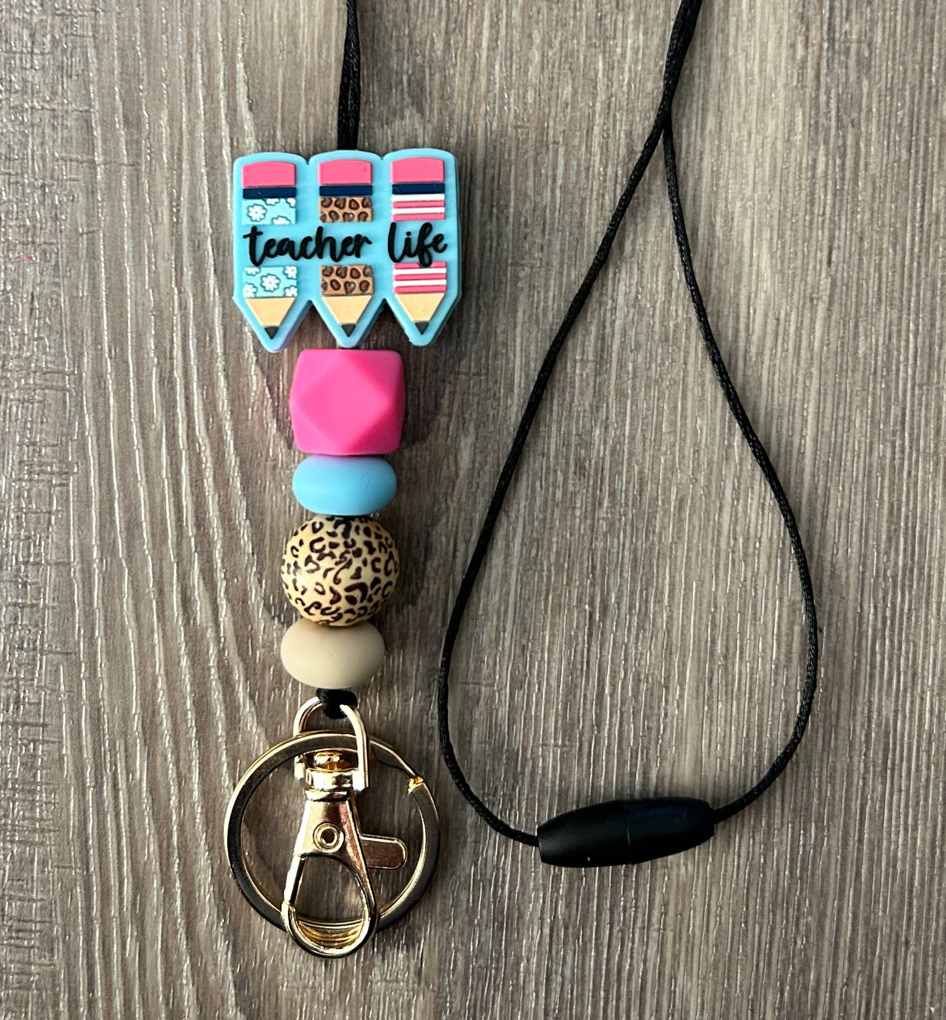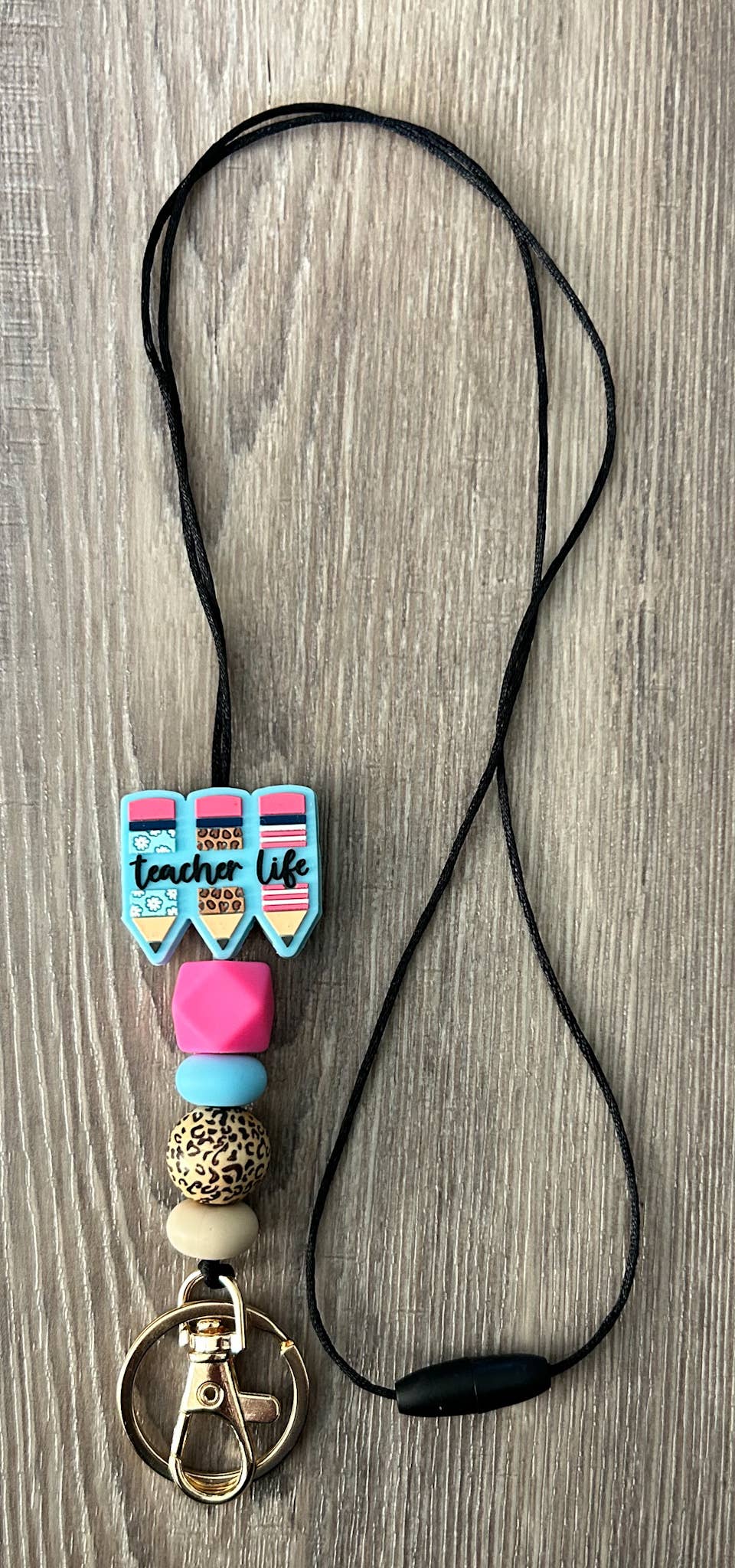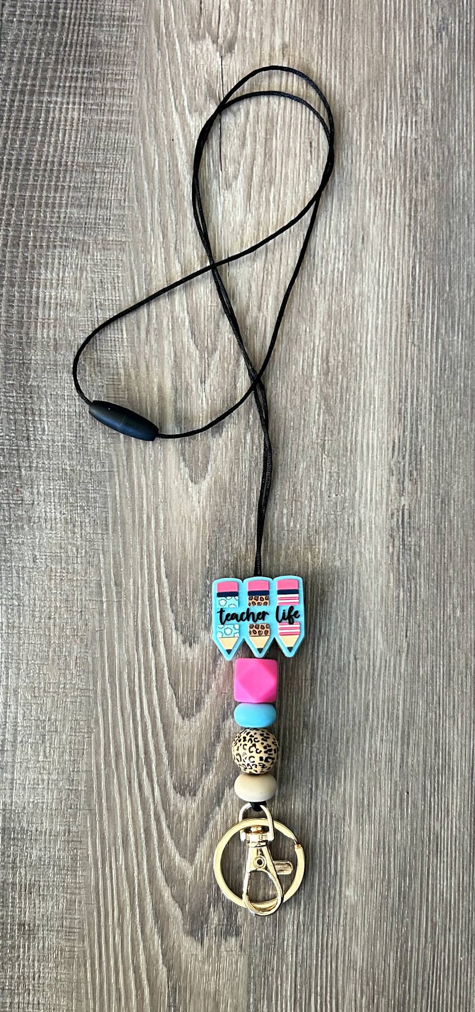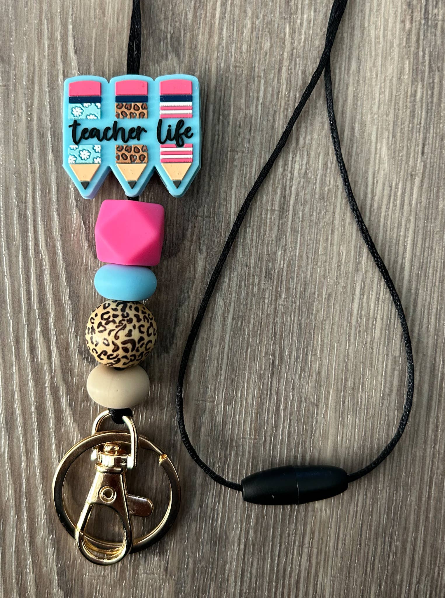 Teacher Life Pink Leopard Pencil Silicone Lanyard